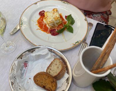Die avond nemen we opnieuw plaats in een goed restaurant. Met ongeveer de helft van de groep sluiten we onze Vespa-avonturen aan in het dorpje bij ons hotel. We wisselen verhalen uit en genieten van een soort Italiaanse tapas. Van verschillende kaasjes en worst tot aan caprese salades en bruschetta’s met verschillende toppings.